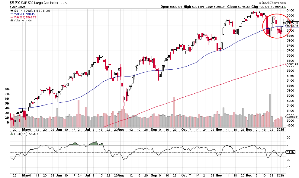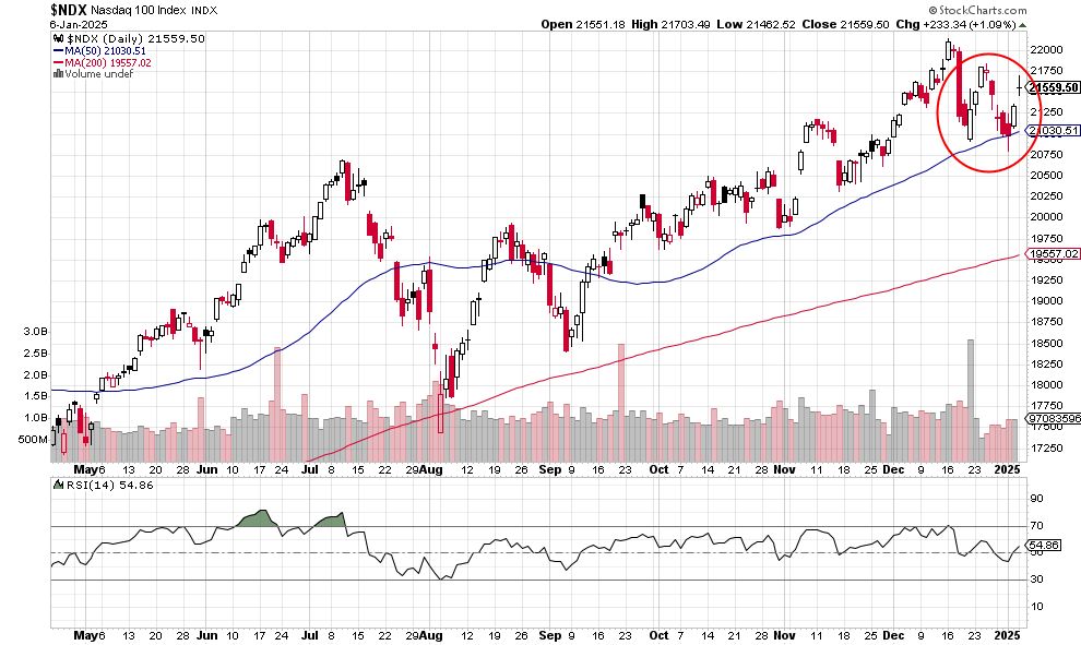 The rally early in the session faded and the gain is just .55%. Still, it’s a close back above the 50-day moving average.