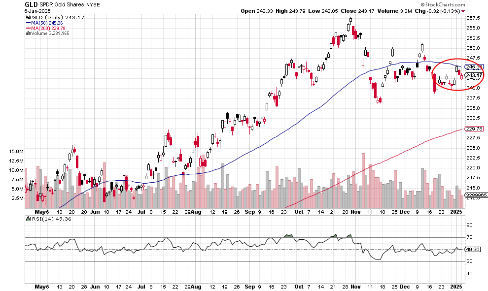 A ho hum session with the shares losing .13%. The 50-day moving average has turned down.