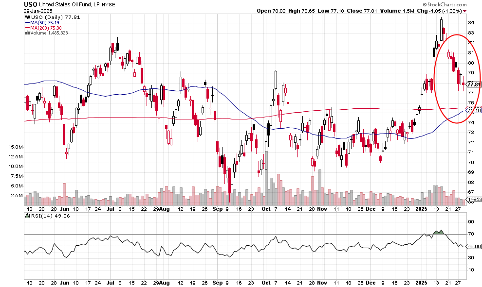 The oil fund dips to just below yesterday’s trading range and buyers re-enter.