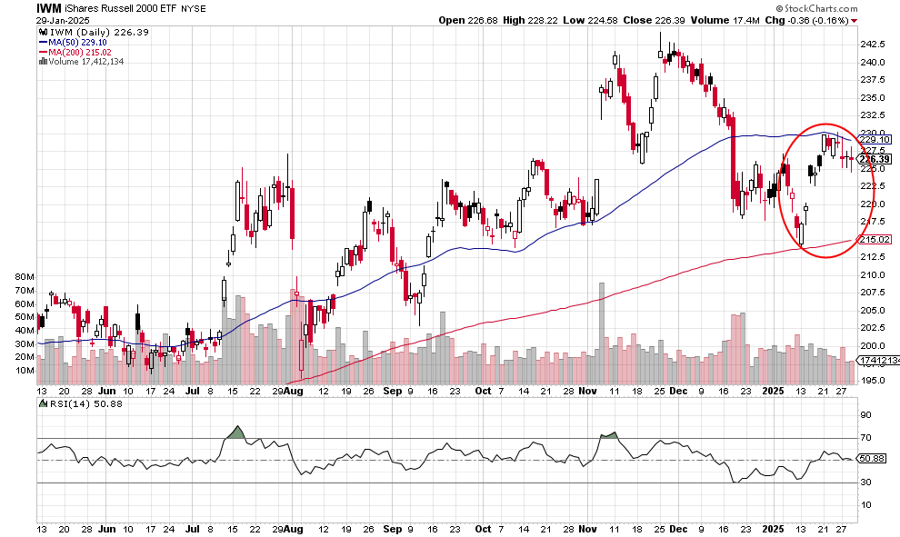 The small caps have yet another day of “can’t get over the 50-day moving average,” which is now turning downward.
